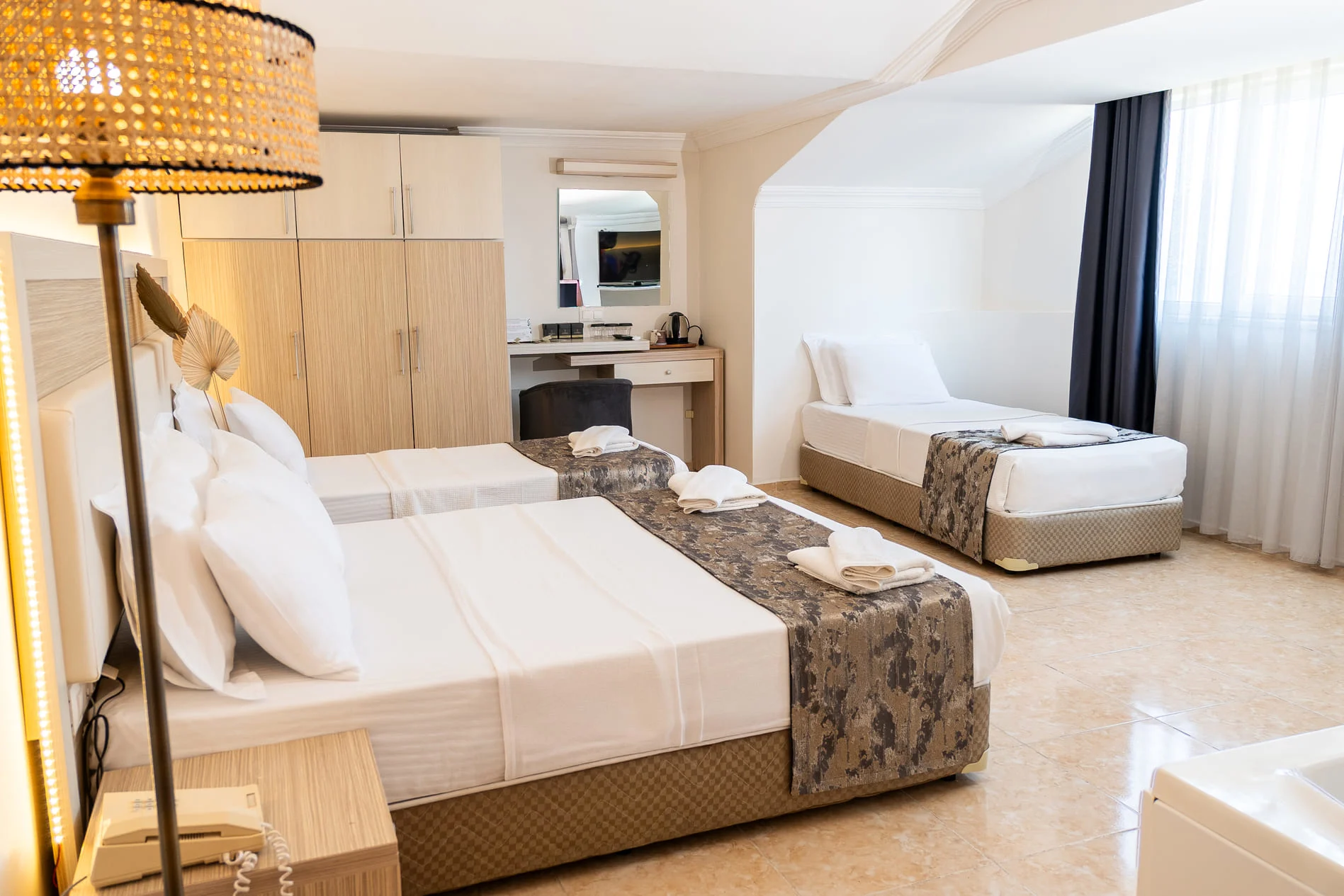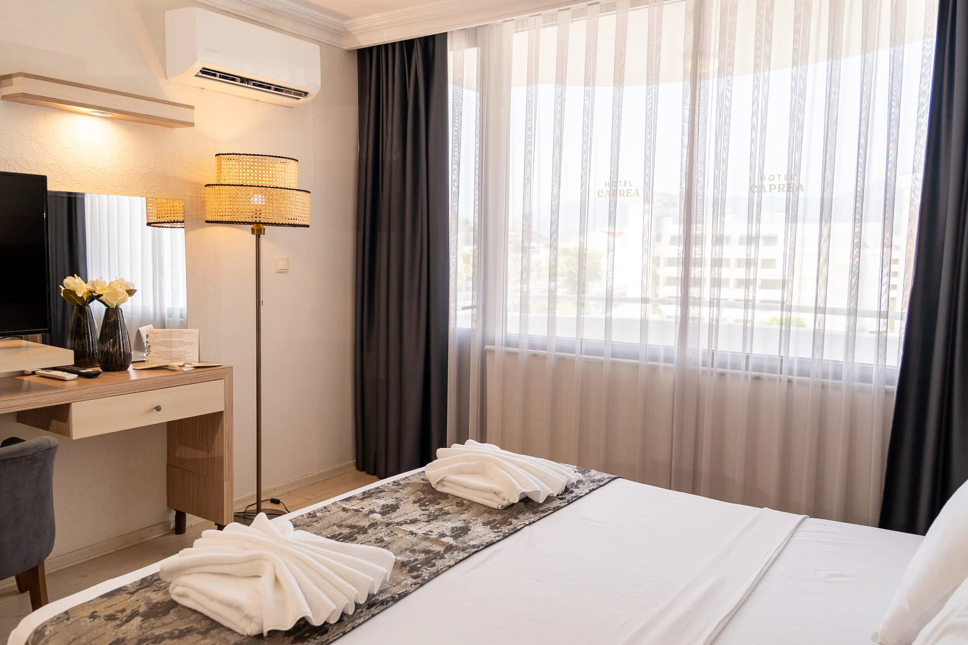 Geniş pencerelerden içeri süzülen doğal ışık, özel banyo, oturma alanı, klima, yüksek hızlı internet ve estetik dokunuşlarla donatılmış mobilyalarla; kendinizi beş yıldızlı bir konforun içinde bulacaksınız.